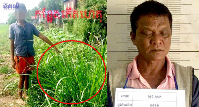 ខេត្តកណ្តាល ៖ នារីវ័យក្មេងម្នាក់ បានចុះពីលើផ្ទះ ដើរទៅរកបត់ជើងតូចនៅខាងក្រោយផ្ទះ ស្រាប់តែត្រូវប្រុសចំណាស់ល្មោភកាមម្នាក់ បានស្ទុះចូលមកចាប់អូសដៃចូលទៅក្នុងគុម្ពោតព្រៃ ចាប់រំលោភរហូតដល់បានសម្រេច តែដឹងអី ពេលនោះឪពុកម្តាយនារីរងគ្រោះតាមទាន់ ក៏ប្តឹងសមត្ថកិច្ចចាប់ជនល្មោភកាមខាងលើ យកទៅចាត់ការតាមច្បាប់។