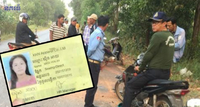 ខេត្តកោះកុង ៖ នារីវ័យក្មេង មានឈ្មោះយ៉ិន អាយ អាយុ២៣ឆ្នាំ មុខរបរកម្មការនីរោងចក្រកាត់ដេរ ស្នាក់នៅភូមិព្រែកស្វាយ សង្កាត់ដងទង់ ក្រុងខេមរភូមិន្ទ ទើបនឹងចេញពីធ្វើការ ជិះម៉ូតូបំណងត្រឡប់ទៅផ្ទះវិញ ក៏ស្រាប់តែជួបគ្រោះអកុសល ត្រូវរថយន្តបុកបែកក្បាលស្លាប់យ៉ាងអាណោចអាធ័ម បង្កឱ្យមានការភ្ញាក់ផ្អើលឡើង កាលពីវេលាម៉ោង៦ព្រលប់ ថ្ងៃទី២៤ ខែមករា ឆ្នាំ២០១៩ ត្រង់ចំណុចមុខមន្ទីរអប់រំ យុវជន និងកីឡាខេត្តកោះកុង ស្ថិតក្នុងភូមិ៣ សង្កាត់ស្មាច់មានជ័យ ក្រុងខេមរភូមិន្ទ។
