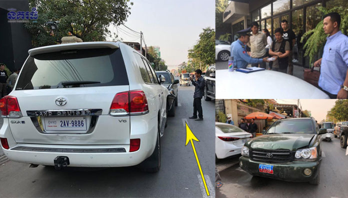 ភ្នំពេញ ៖ រថយន្តម៉ាកហាយឡែនដឺរ ពាក់ ស្លាកលេខ ខេមរភូមិន្ទ មួយគ្រឿង បើកបរ បោះពួយខ្វះការប្រុងប្រយ័ត្នបានជ្រុលទៅបុក រថយន្តទំនើបឡង់គ្រីសឺរ ហើយបានរេចង្កូតទៅបុករថយន្តទំនើប Bentleybentayga SUV បណ្តាលឱ្យរងការខូចខាតយ៉ាងដំណំ ដែលករណីនេះបានកើតឡើងនៅមុខហាង B1&B2 Salon ក្នុងសង្កាត់បឹងកក់ទី២ ខណ្ឌទួលគោក កាលពីម៉ោង៣ និង៤០នាទី នៅ ថ្ងៃទី២៩ ខែមករា ឆ្នាំ២០១៩។
