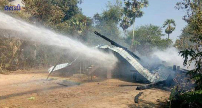 ខេត្តព្រៃវែង ៖ ផ្ទះមួយខ្នងត្រូវបានអគ្គិភ័យលេបត្របាក់ទាំងស្រុង ខណៈដែលម្ចាស់ផ្ទះរវល់ចេញទៅផ្សារទិញម្ហូប លុះត្រឡប់មកវិញ ភ្លើងបានឆេះផ្ទះយ៉ាងសន្ធោសន្ធៅ បង្កឱ្យមានការភ្ញាក់ផ្អើលឡើង កាលពីវេលាម៉ោង៨ និង៤៥នាទីព្រឹក ថ្ងៃទី០១ ខែកុម្ភៈ ឆ្នាំ២០១៩ នៅចំណុចភូមិរកា ឃុំរកា ស្រុកពារាំង។